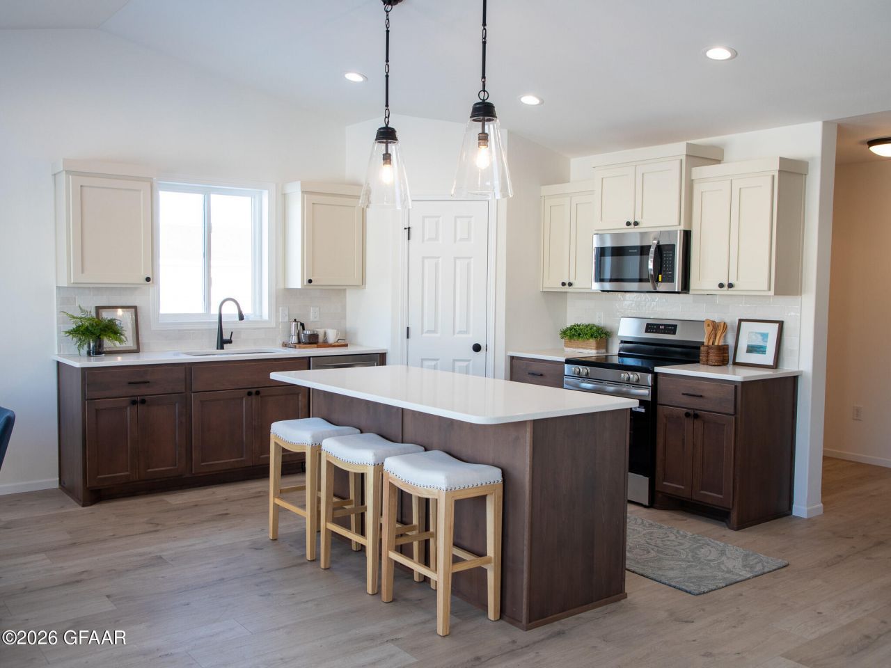 Completed 1439 Rambler/Ranch with fully finished basement! Custom kitchen with quartz countertops and laundry on main! Spacious master suite with walk-in shower. Huge, finished basement with two additional bedrooms, bathroom, and huge storage room! Includes sod yard & sprinkler system, kitchen appliances, & 10x12' concrete patio! This home is available to buy with a September closing. Owner/Agent