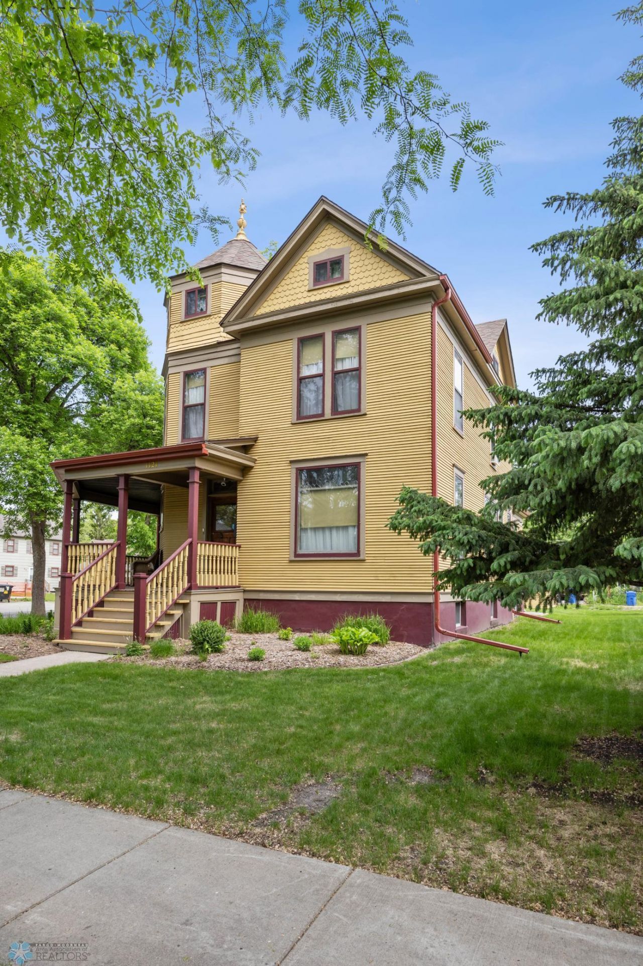 Own a piece of Fargo's architectural history with this impeccably preserved Queen Anne-style home, a true showpiece brimming with original charm and special details. This ornate Victorian treasure boasts a striking 3-story tower, wrap-around porch, and a beautifully maintained exterior with a classic, eye-catching paint scheme.Inside, you'll find an abundance of exquisite original woodwork, decorative hardwood floors, and a rich array of stained-glass and beveled-glass windows. The main floor begins with a grand foyer featuring an open staircase, leading to a formal front parlor with pocket doors that open to a spacious dining room complete with a built-in hutch. The dining room flows into a cozy living room, and beyond that, a spacious breakfast room that opens to the kitchen. The kitchen blends classic charm with modern convenience, offering quartz countertops, a tasteful tile backsplash, and a pantry with plenty of storage. Don't miss the convenient main floor half-bath or the back staircase, providing a second route to the upper level.Upstairs, the second floor hosts four bedrooms lots of sunlight, a full bath with a classic clawfoot tub, and a convenient laundry area. The third floor surprises with a sprawling loft space and an enchanting octagonal tower room finished in richly-stained beadboard walls and ceiling.The basement offers two large finished rooms ideal for a family room, home office, or recreation space. Outside, enjoy a fenced garden area, a two-stall garage, and the gracious charm of the wrap-around porch.This rare offering combines the elegance of a bygone era with thoughtful updates and excellent livability?don't miss your chance to own a true Queen Anne masterpiece.