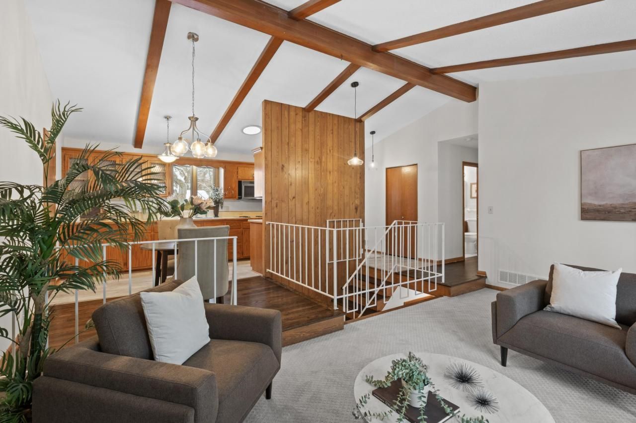 Edit mortgage details for a more accurate paymentThis beautifully maintained 4 bedroom, 2 bath rambler features fresh paint and updated flooring throughout, offering a bright and welcoming feel. The main level includes a galley kitchen with new LVT flooring, a dining area, and a vaulted living room centered around a cozy fireplace, along with three bedrooms showcasing refinished hardwood floors and a full bathroom. Just off the main level is a large, sun filled four season patio with a vaulted wood paneled ceiling and fireplace, leading out to a deck and the backyard. The lower level offers a spacious family room with an additional fireplace, a fourth bedroom, and a 3/4 bathroom. Completing the home is a convenient attached, deeper two car garage with built-in storage shelves.