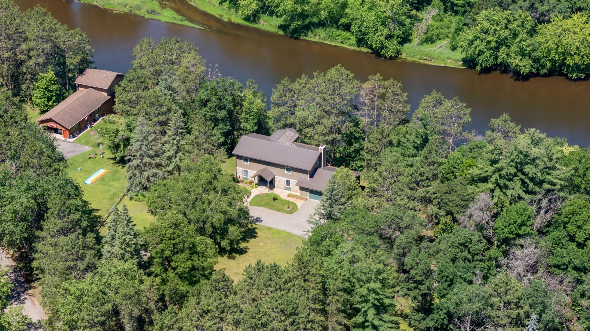 Nestled on a beautiful bend of the Crow Wing River, this spacious home is looking for new owners to enjoy the river, yard and home! Totally remodeled down to the studs in 2020, your new home boasts a cathedral ceiling in the living room with a wall of windows to take in the wildlife, sunsets and river views. The main level features laundry, a wonderful kitchen & dining area, 2 bedrooms and living room. The spacious primary bedroom suite has built-in shelves, two walk-in closets, private bathroom with separate tub and shower. There are two other bedrooms upstairs with a full bathroom. The basement is unfinished and waiting for the new owner to put their own finishing touches on it. There's a bedroom space with egress window, office and a shop area also. The garage was brand new in 2019, along with the metal roof. Take in some nature on the deck facing the river. Watch the deer cross the river, eagles fly overhead and the geese and trumpeter swans. If you like to golf, there's a course just down the road! Enjoy this beautiful home that has good bones from the 1970's but has been remodeled inside and out in the past few years. You have over 2 acres to play and 400'+ of river shoreline! Grab the kayak, tube or fishing boat to play on the river. 4+ BR, 4 bath, office and an attached 2-stall garage. There are 2 lots with this property. The 2nd lot has a small building envelope according to the county. Come take a look at this beauty today!